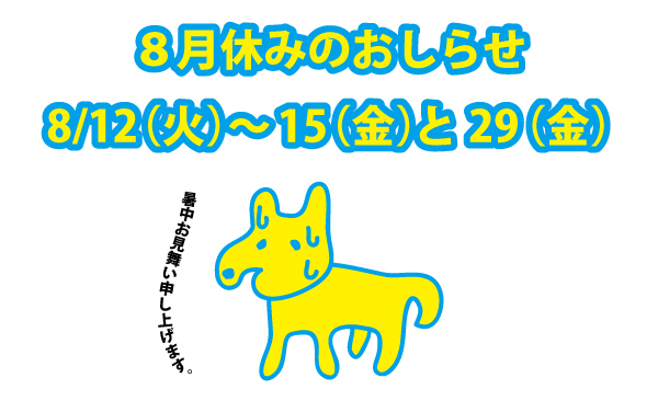 【利用者のみなさんへ】8月のお休みについて